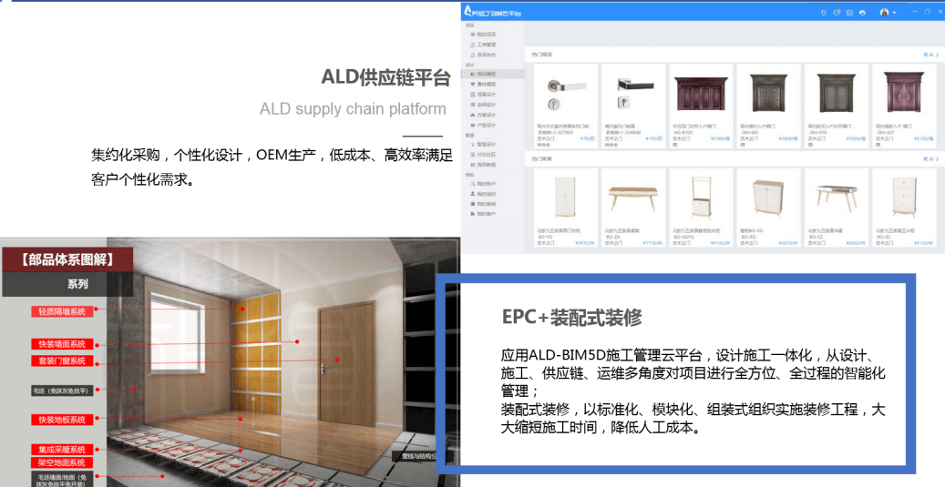 提供供应链管理的针对性软件功能、支持EPC管理模式、为装配式装修提供保障